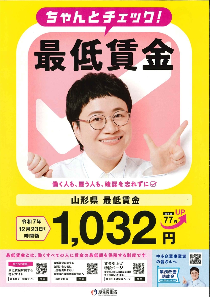 【問い合わせ先】山形労働局労働基準部賃金室(TEL 023-624-8224)