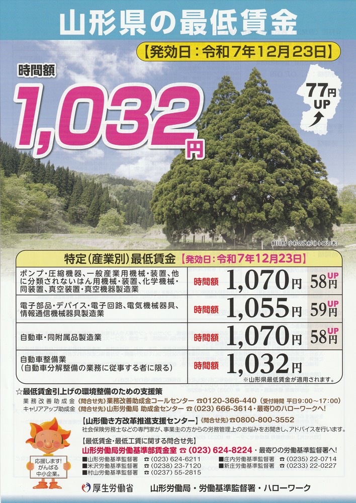 ※自動車整備業については、令和7年12月23日から山形県最低賃金